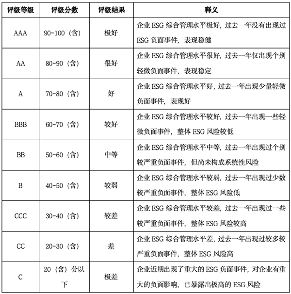 附表:联洲信评ESG评级结果释义